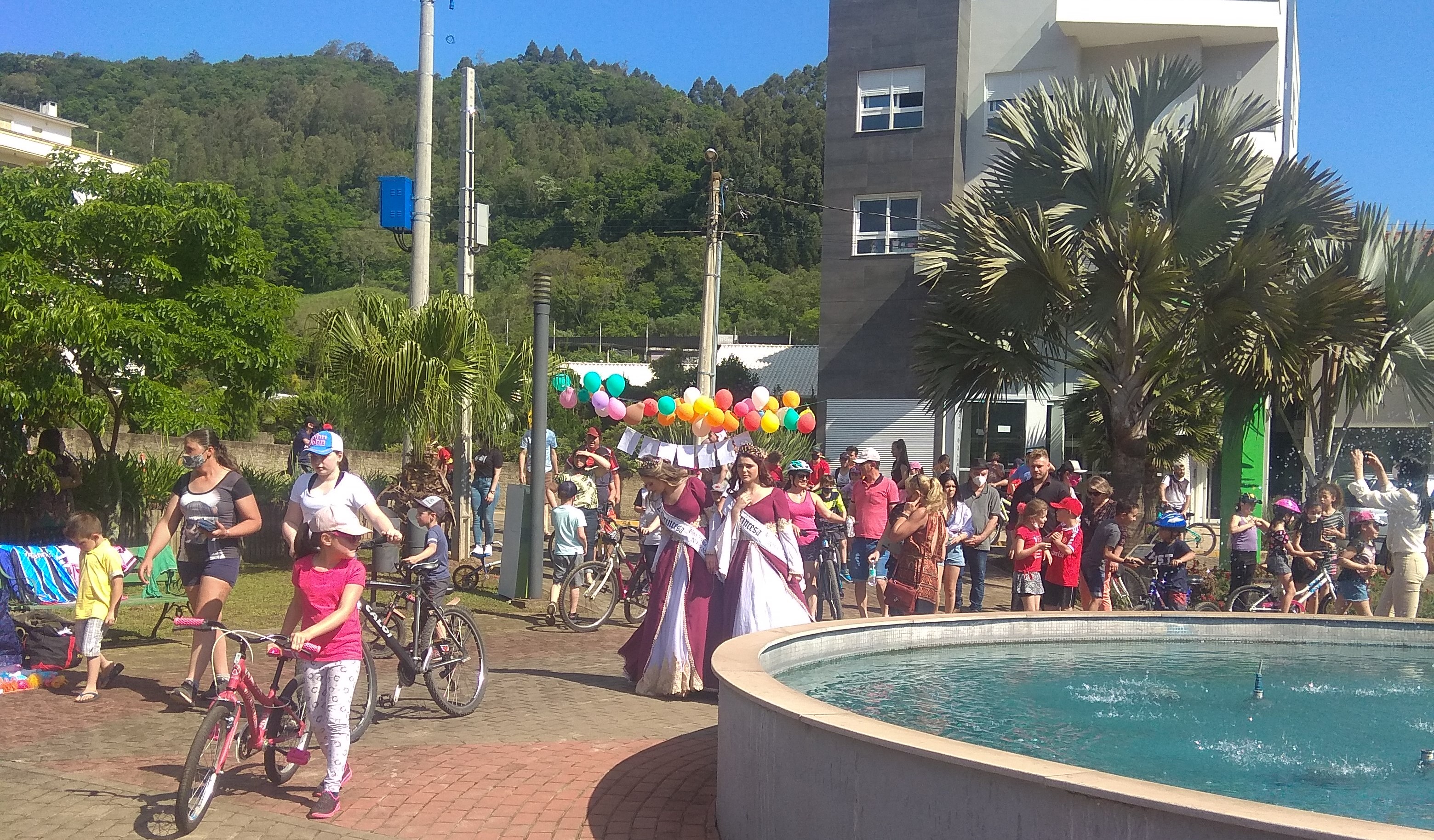As princesas e os ciclistas chegando na Praça Municipal.jpg